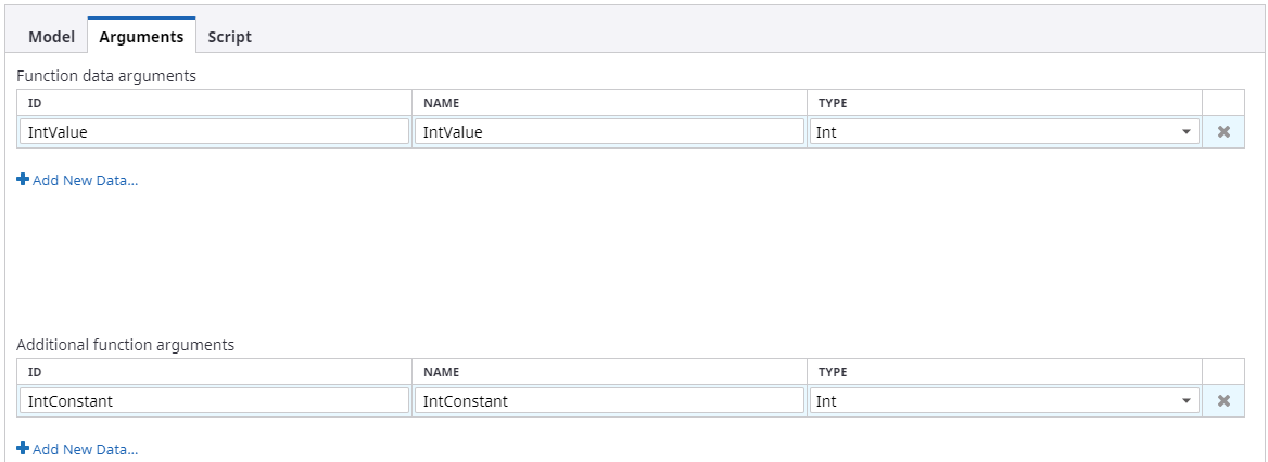 In the sample screen below, IntValue is set as a data argument and IntConstant is added as an additional argument.