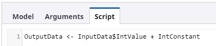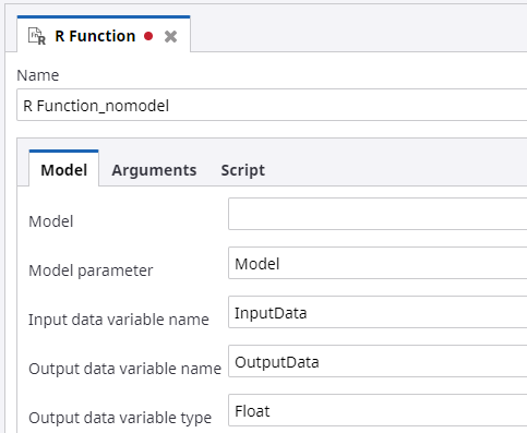 - Model parameter (optional): Specify the name for the R model variable to be used in the R script.