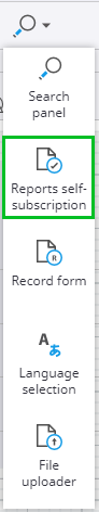 - Open a View. From the Components toolbar, click the Reports self-subscription icon and drag it onto the View.