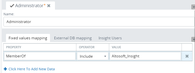 To open the Administrator role, select , expand Roles, and then click Administrator. This is the default Administrator role.