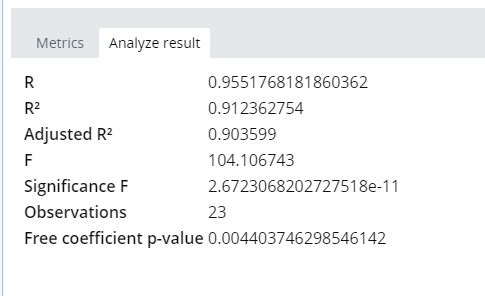 Free coefficient p-value is used to estimate the model quality.