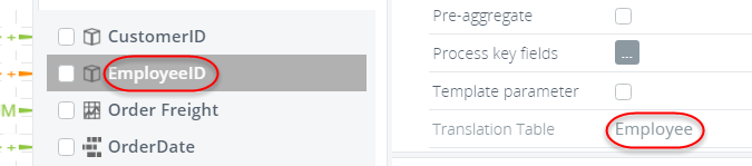 Fields from the translation table are added as separate columns and are linked to the dimension that the translation table is assigned to.