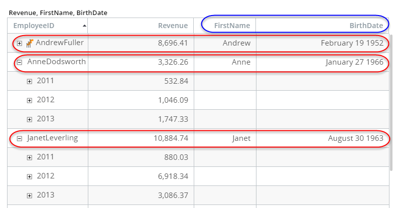 If you have mapped several fields in the translation table, you can use them in a metric grid. Fields from the translation table are added as separate columns that are bound to the dimension linked to the translation table.