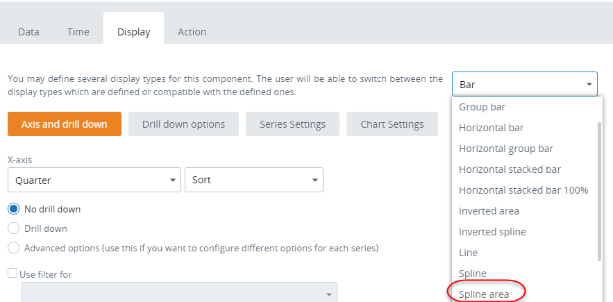 will now be presented as a spline (smooth curve) with its area shaded instead
