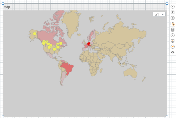 You can create a map component and display the countries, revenues, and pins on US cities where the orders were shipped.