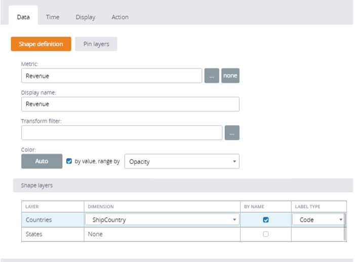- In the Shape layers table, select ShipCountry as the dimension layer for Countries.