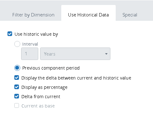 Selected check boxes when the historical period is set (either as an interval or as the previous component period)