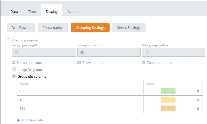 - Use Group pin coloring to define pin colors depending on the number of pins in the group.