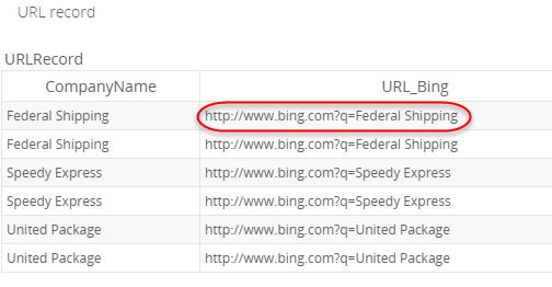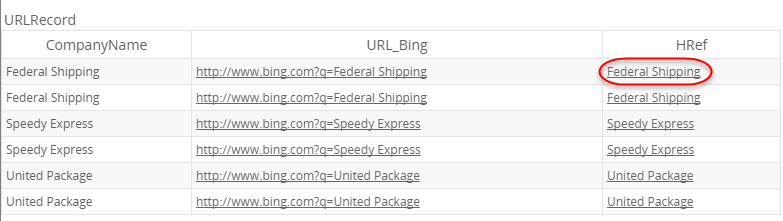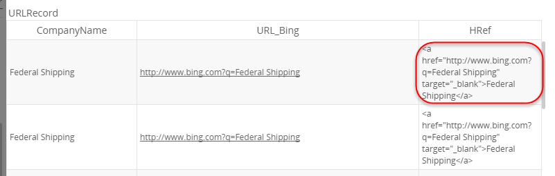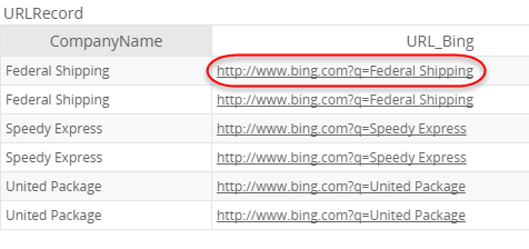 For the URL link: if the URL Field property is selected, the link appears in the grid as an active link.