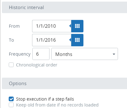 Note If "Chronological order" is not selected, the data load begins from "To" date and moves backwards. In most cases it makes sense to load the data backwards, so we recommend to keep the "Chronological order" unselected.