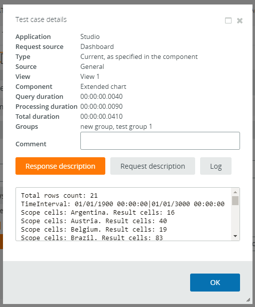 - Each component used in recording test cases has a listing of cases marked by the time stamp when the case was generated.