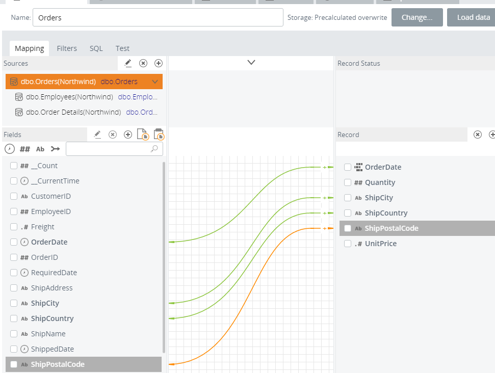 - Create a new record called Orders based on dbo.Orders and join it with dbo.Order Details.