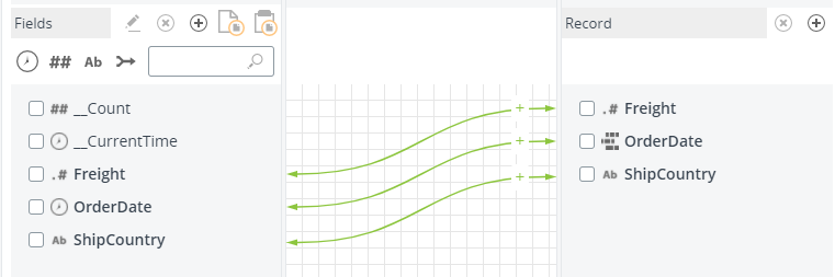 mapped: Freight, OrderDate, and ShipCountry, which means that these three lines