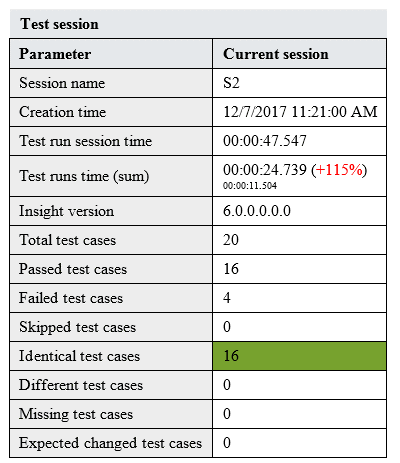 - Make as expected: You can select some of the test cases and convert them as if they are correct. In all other test runs, the comparison results Identical, Different, and Missing are substituted with Expected result changed.