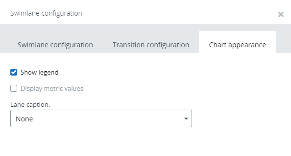 Select Display metric values on the Swimlane configuration window to show the metric values for each swimlane group in the legend.
