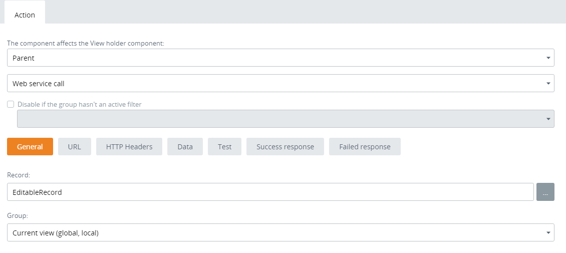 - To set up a web service call, open the Actions wizard for an actionable component and select Web service call as an action.