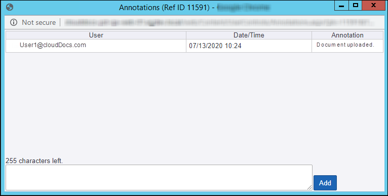 - Click Add to save the comment. Comments once added cannot be edited or deleted.