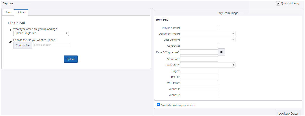 You can upload a document into the application. Use this option when there is no scanner available and if you have the soft copies of the document.