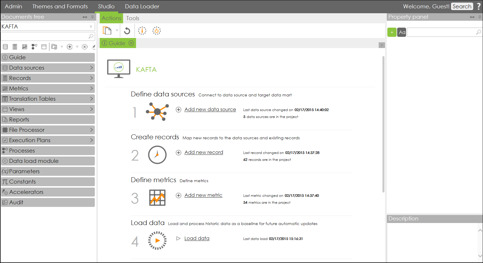 Connect to data source and add new data sources. Insight Studio can connect to a wide variety of data sources, including relational databases, flat files, web services and Excel.