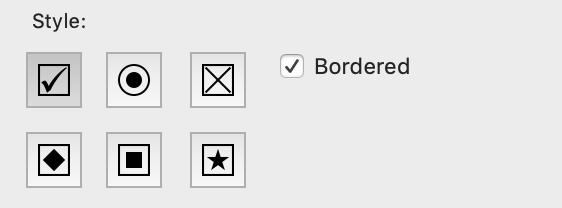 Seleccione un símbolo o estilo de marca que aparece cuando se selecciona una casilla de verificación o botón de opción.