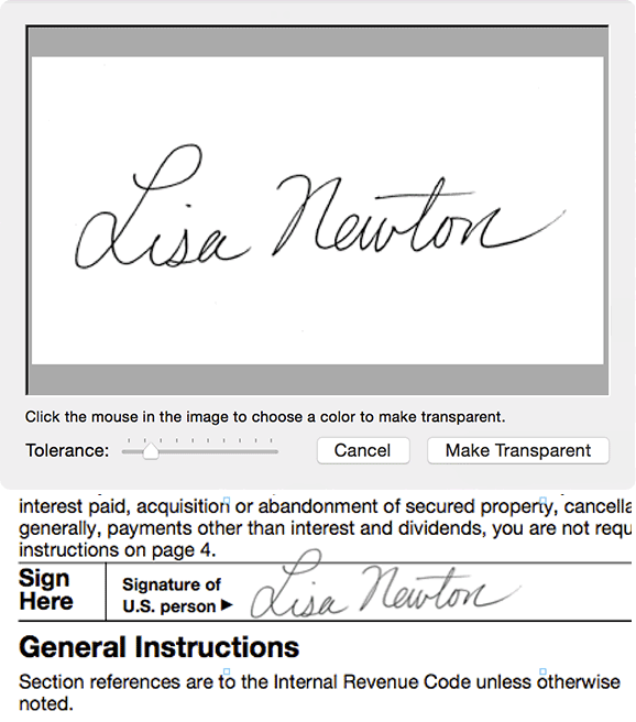 - Con la firma seleccionada, elige Edición > Hacer imagen transparente...