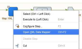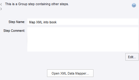 Alternatively, you can open the mapper for a group step that is current on the associated step view and click Open XML Data Mapper