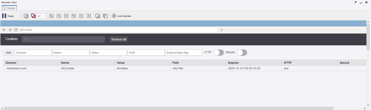 Use the Desktop Automation built-in browser to monitor, add, or delete cookies from the CookieStore.