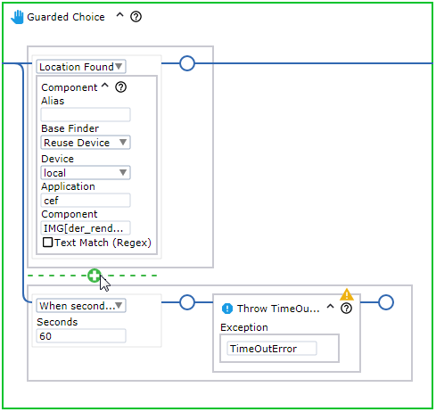 To manually add a guard to a Guarded Choice step, hover your mouse over the bottom line of the guard frame until you see a