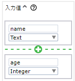 - 新しい入力パラメータを追加するには、プラス記号をクリックした後に、名前を入力してタイプを選択することでパラメータを設定します。