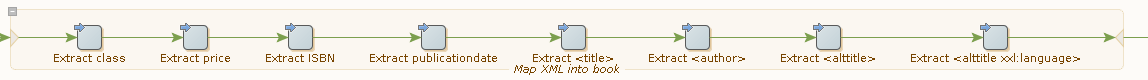 システムは、暗黙の抽出を実行して、ロボットにステップを挿入するのに必要な実際のステップを自動生成します。この手順は常に、マッパーで作成された各関連付けに対して、正確に 1 つの抽出またはタグ属性抽出ステップを生成します。