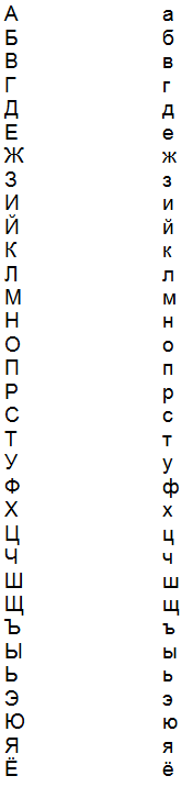 Letters in the Russian alphabet
