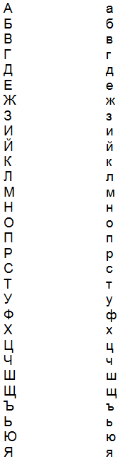 Letters in the Russian alphabet