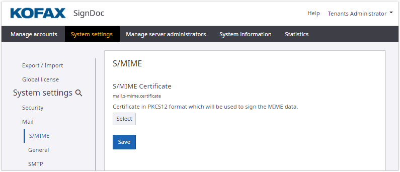 All S/MIME related settings can be configured selecting S/MIME in the Mail section.